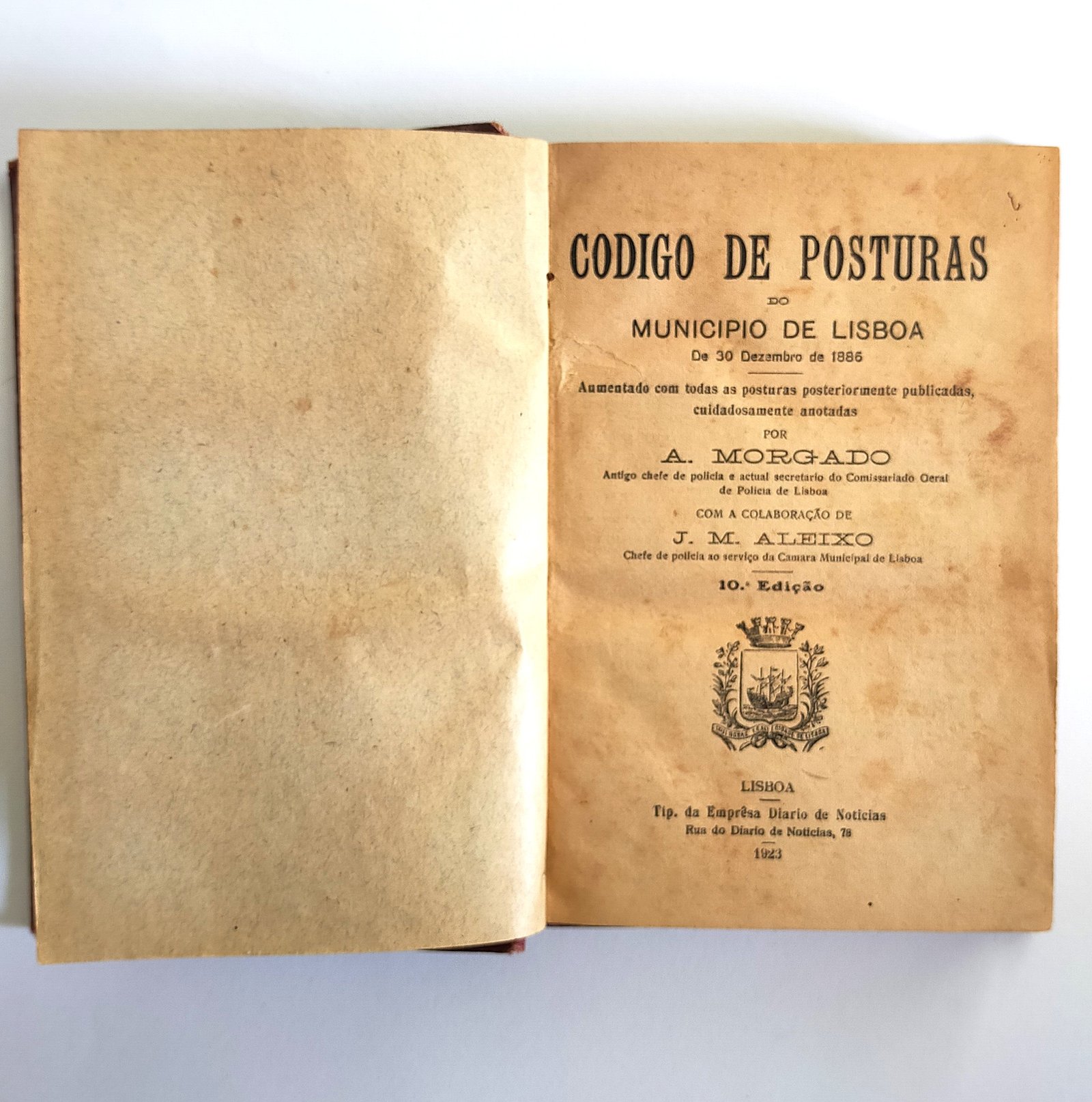 CODIGO DE POSTURAS DO MUNICIPIO DE LISBOA De 30 Dezembro de 1885 – A. Morgado